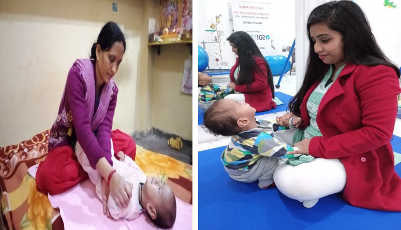 After, 28 sessions at the Centre and also sessions at home over a period of one month, he started unsupported sitting, improvised functional activity of both hands with mild assistance, responding to verbal clues. Neck and trunk muscle control also developed.